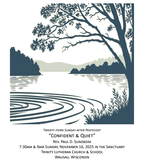 Twenty-third Sunday after Pentecost Trinity Lutheran Church & School November 16, 2025 0 Comments Category Worship Like Tweet +1 Pin it Write a comment: Cancel replyCommentName * Email * Website Your email address will not be published. Save my name, email, and website in this browser for the next time I comment. Δ